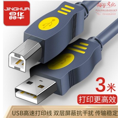 晶华 3米U112H USB2.0高速打印线 USB连接线 电脑AM/BM方接口连接线 灰色 (SKU:yzwhyp934741
