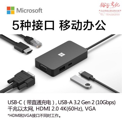 微软 USB-C 扩展坞 USB3.2高速传输 HDMI2.0 4K 60Hz显示输出 千兆有线网口 VGA 多设备兼容 (SKU:yzwhyp934840