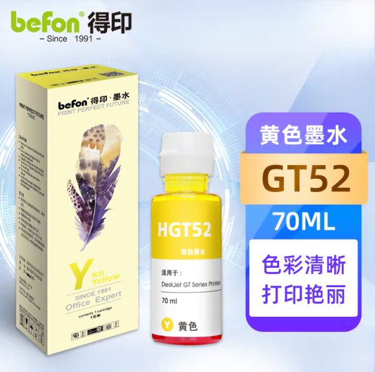 首页 > 办公用品 > 墨水 > 得印 GT52黄色墨水70ML 适用惠普GT5810 GT5820 INK Tank 310 410 319 419 318 418 518 618墨仓式打印机 (SKU:yzwhyp934881