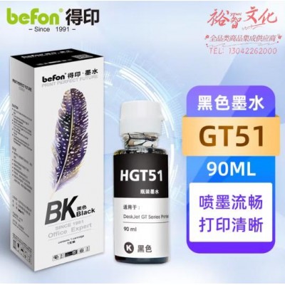 首页 > 办公用品 > 墨水 > 得印 GT51黑色墨水90ML 适用惠普GT5810 GT5820 INK Tank 310 410 319 419 318 418墨仓式打印机 (SKU:yzwhyp934884