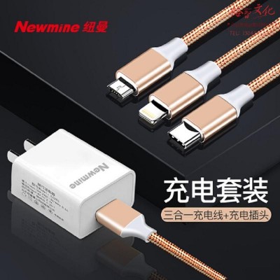 纽曼 苹果/Type-C/安卓三合一数据线一拖三充电线10W充电器套装 XS06套装 (SKU:yzwhyp934888
