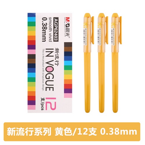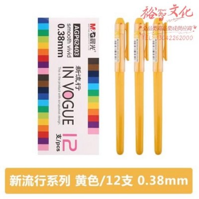 晨光 AGP62403 彩色中性笔 黄 0.38mm针管笔 单盒装(SKU:yzwhyp934910
