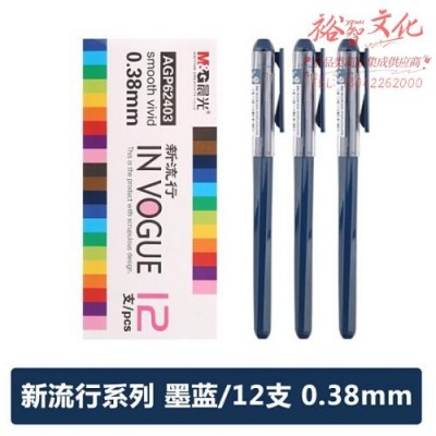 晨光(MG)新流行手账笔彩色中性笔签字笔水性笔 墨蓝 AGP62403 全针管拔帽款 0.38mm 12支装(SKU:yzwhyp934915