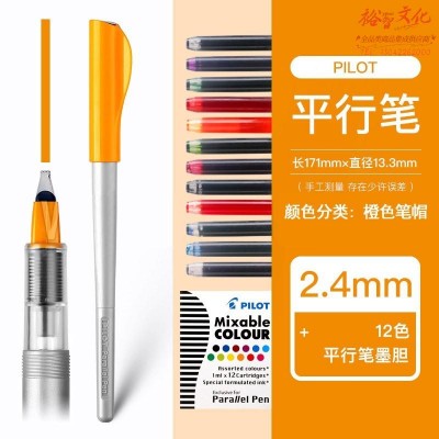 百乐 FP3-SS平行笔 美术美工钢笔 鸭嘴笔 艺术字体英文书法钢笔 【橙色2.4mm 12支彩色墨胆】(SKU:yzwhyp934922