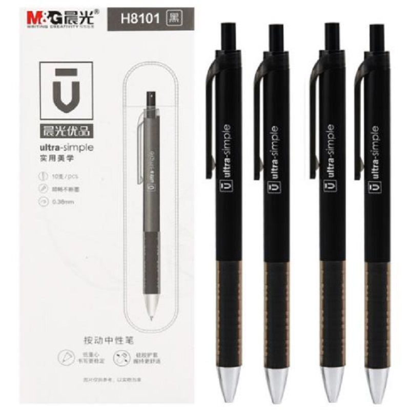 晨光 AGPH8101 按动水笔子弹头办公签字笔 0.38mm 黑色 10支盒装(SKU:yzwhyp935037