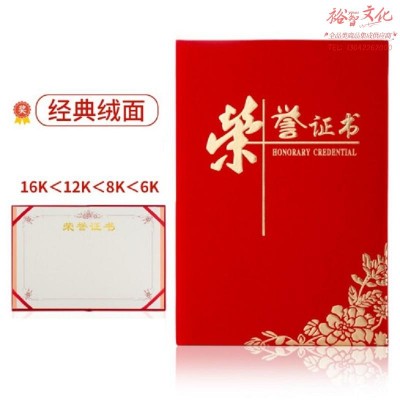 12K荣誉证书 绒面荣誉证书(红)(10本) (SKU:yzwhyp935075