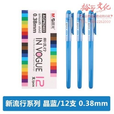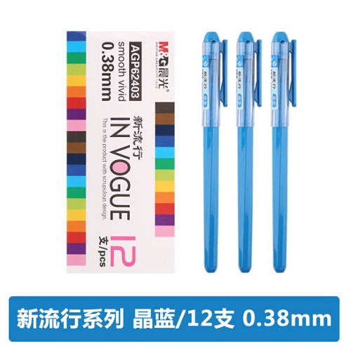 晨光 AGP62403 彩色中性笔 晶蓝 0.38mm针管笔 单盒装(SKU:yzwhyp935095