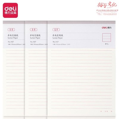 首页 > 纸及纸质品 > 纸及纸板(不包含复印纸) > 得力(deli)3本16K/20张单线信纸信稿纸 入党申请专用纸笔记本子信签纸草稿纸作业本 3427 70g (10本起订) (SKU:yzwhyp935105
