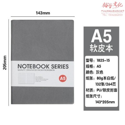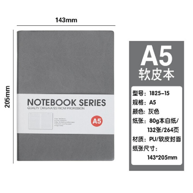 博文记事本PU软皮简约皮面本子25K加厚学习用本 【(1825-15)A5 灰色】(SKU:yzwhyp935214