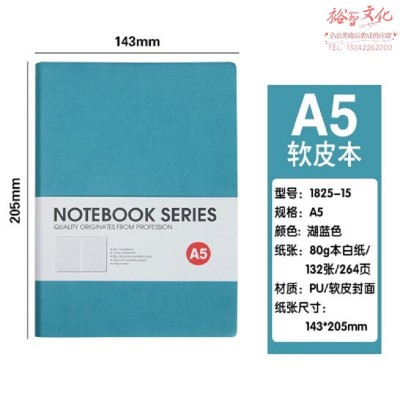 博文记事本PU软皮简约皮面本子25K加厚学习用本 【(1825-15)A5 湖蓝】(SKU:yzwhyp935217