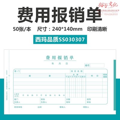 首页 > 纸及纸质品 > 纸及纸板(不包含复印纸) > 西玛(SIMAA)SS030 307 费用报销单 240*140mm 50页/本/10本/包 报销凭证粘贴单申请单借款单支出通用财务单据凭证(SKU:yzwhyp935229