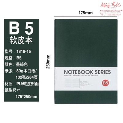 博文记事本PU软皮简约皮面本子18K加厚学习用本 【(1818-15)B5 墨绿】(SKU:yzwhyp935292