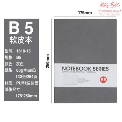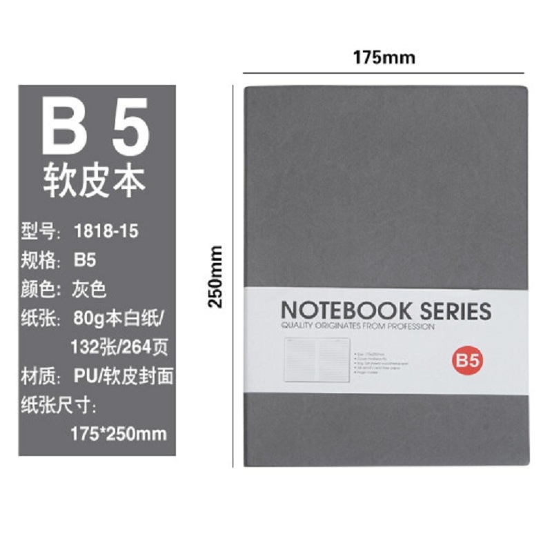 博文记事本PU软皮简约皮面本子18K加厚学习用本 【(1818-15)B5 灰色】(SKU:yzwhyp935302