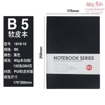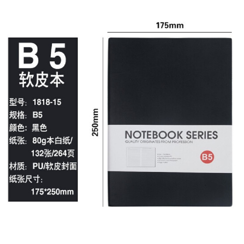 博文记事本PU软皮简约皮面本子18K加厚学习用本定【(1818-15)B5 黑色】(SKU:yzwhyp935303