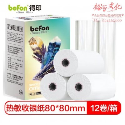 首页 > 纸及纸质品 > 纸及纸板(不包含复印纸) > 得印 热敏收银纸打印纸80*80mm 中高档美团外卖接单超市餐饮磅单小票纸80mm卷式热敏纸POS打印纸 12卷/箱 (SKU:yzwhyp935354