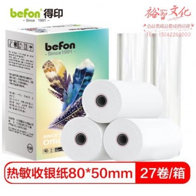 首页 > 纸及纸质品 > 纸及纸板(不包含复印纸) > 得印 热敏收银纸打印纸80*50mm 中高档美团外卖接单超市餐饮磅单小票纸80mm卷式热敏纸POS打印纸 27卷/箱 (SKU:yzwhyp935355