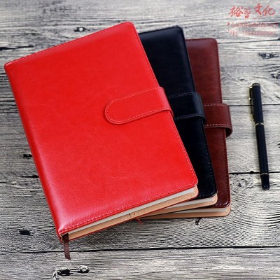 优必利 笔记本子B5皮面日记本会议记录本加厚带扣商务办公工作记事本定制可印LOGO 棕色/黑/红 可选(SKU:yzwhyp935358