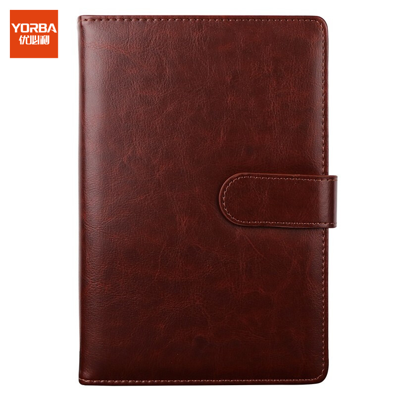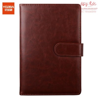 优必利 笔记本子A5皮面日记本会议记录本加厚带扣商务办公工作记事本定制可印LOGO 棕色/红色/黑色 可选 (SKU:yzwhyp935359