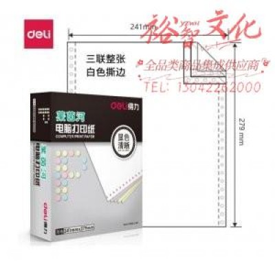 首页 > 纸及纸质品 > 纸及纸板(不包含复印纸) > 得力 deli 莱茵河 L241-3 电脑打印纸 (S白色撕边)(盒) (SKU:yzwhyp935434