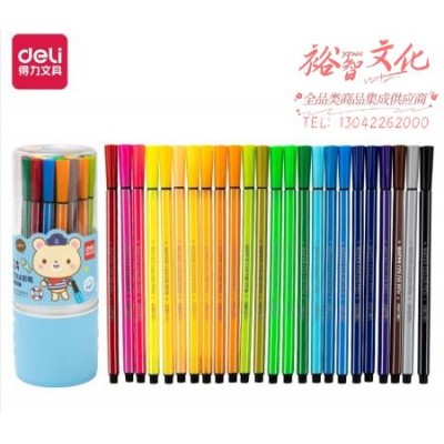 得力(deli)24色可洗水彩笔 六角细杆儿童画画彩色涂色颜色笔文具 收纳筒学生礼物春季出游写生 (SKU:yzwhyp935852