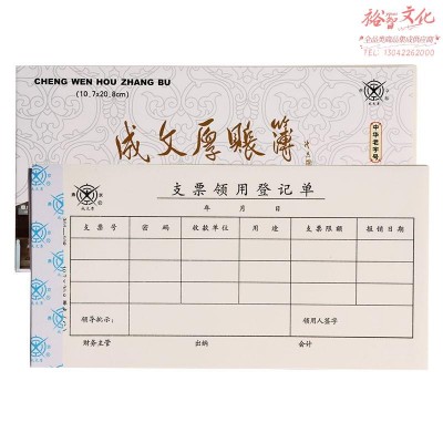 成文厚 支票领用登记单 凭证 丙式108 财会用品(5本1包)(SKU:yzwhyp935867