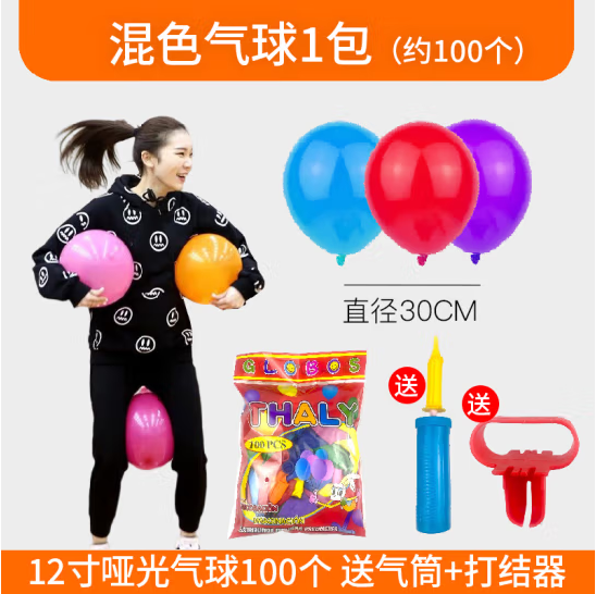 企鹅漫步团建游戏道具拓展活动团队趣味运动会器材 12寸厚气球100个 打气筒 打结器 (SKU:yzwhyp935872