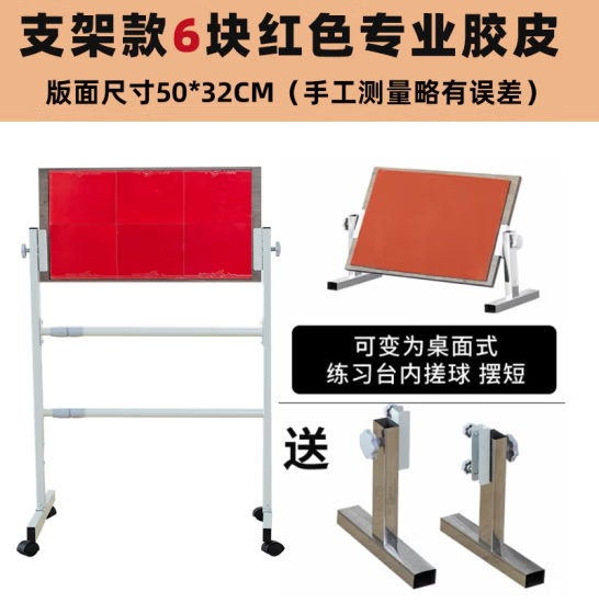 乒乓球反弹板挡板练球神器发球机对打训练器 双支架款50*32cm【6块红色胶皮】 (SKU:yzwhyp935961