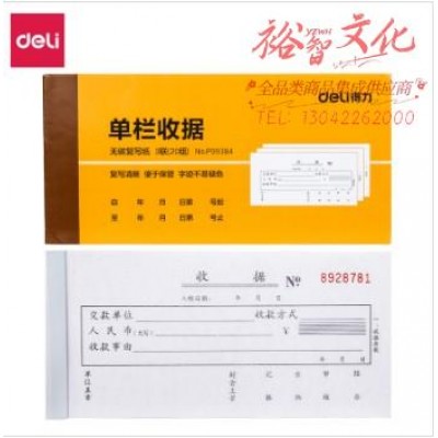 得力 9384 三联单栏收据(黄)87*175mm(本)(SKU:yzwhyp935963