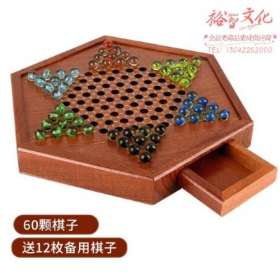 紫湖 跳棋玻璃珠大号儿童中国跳跳棋木质抽屉棋盘60颗棋子套装12颗备子 (SKU:yzwhyp935991