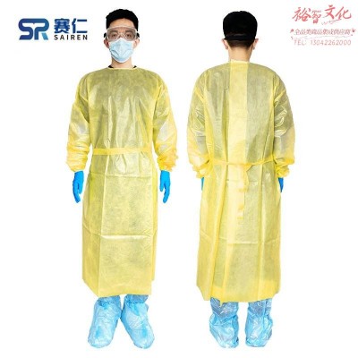 赛仁 一次性隔离衣 背开式防护衣 防护隔离服 (160-180CM)/(180-190CM) 黄色款 两尺码可选SKU:yzwhyp936159