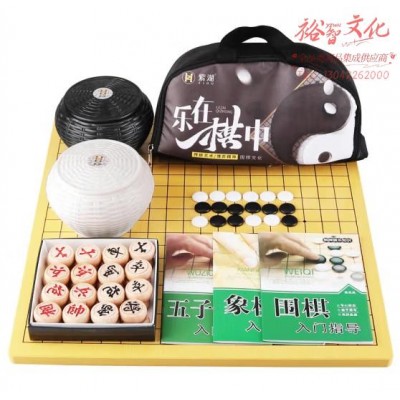 紫湖 围棋中国象棋五子棋套装 木质双面棋盘初学者入门培训棋 (SKU:yzwhyp936185