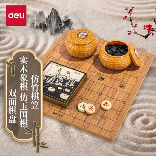 得力(deli)围棋中国象棋套装双面棋盘 多功能棋五子棋 仿竹棋篓 6743 (SKU:yzwhyp936402