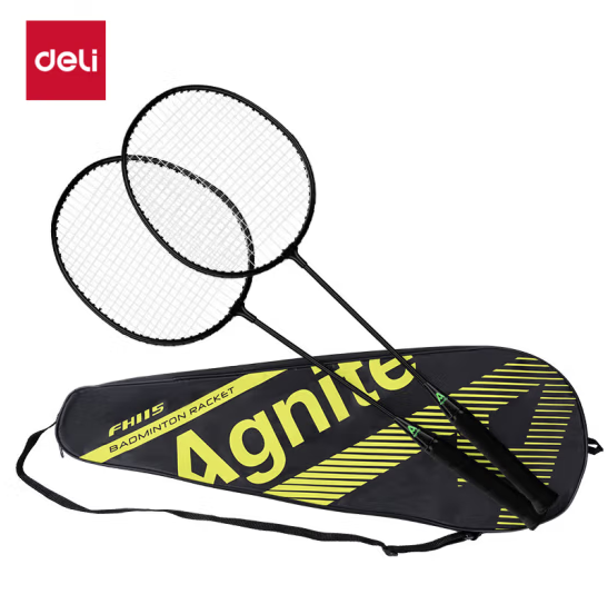 得力(deli)羽毛球拍双拍铁分体娱乐对打耐用套装 黑色FH115 (SKU:yzwhyp936537