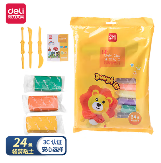 得力(deli)24色超轻粘土儿童柔软易可塑拉伸安全黏土橡皮泥套装 67851 (SKU:yzwhyp936611