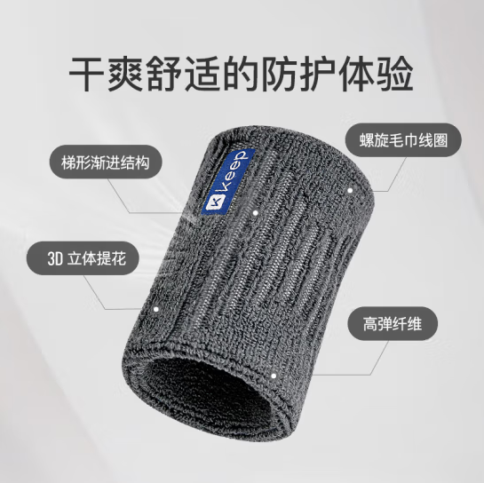 Keep 护腕健身训练防扭伤腱鞘炎吸汗擦汗篮球羽毛球护具加压护手腕 【单只】灰色 (SKU:yzwhyp937537