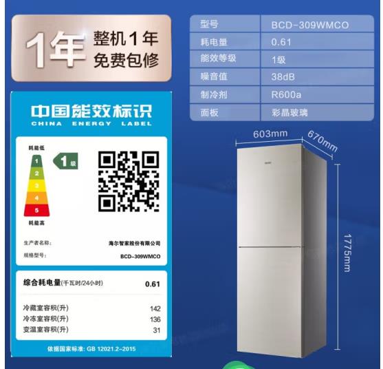 首页 > 电气设备 > 电冰箱 > 海尔 冰箱双开门两门309升变频静音节能风冷无霜家用大冷冻室 轻奢金 136升大冷冻 (SKU:yzwhyp937829