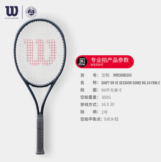 Wilson威尔胜 2024法网联名全碳素专业网球拍SHIFT 99 V1 WR150811U2 (SKU:yzwhyp938106