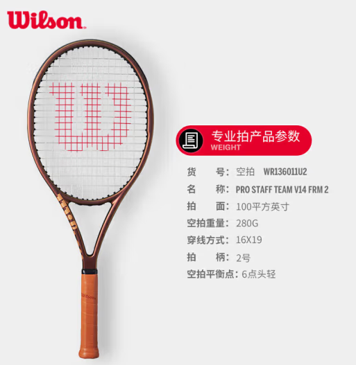 Wilson威尔胜 碳纤维专业网球拍 WR136011U2-PRO STAFF TEAM V14 (SKU:yzwhyp938121