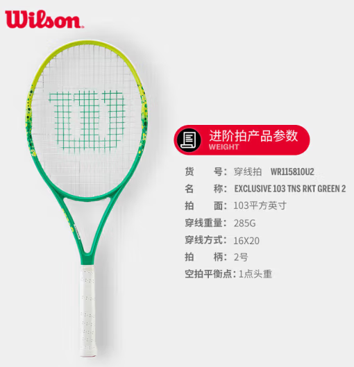 Wilson威尔胜 网球拍四季夏浪男女2号EXCLUSIVE 103 TNS RKT WR115810U2 (SKU:yzwhyp938194