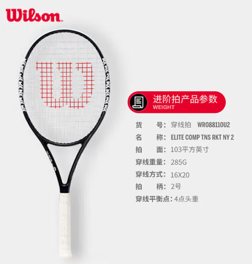 Wilson威尔胜 小黑拍网球拍轻量舒适休闲拍ELITE COMP NY 2 WR088110U2 (SKU:yzwhyp938224