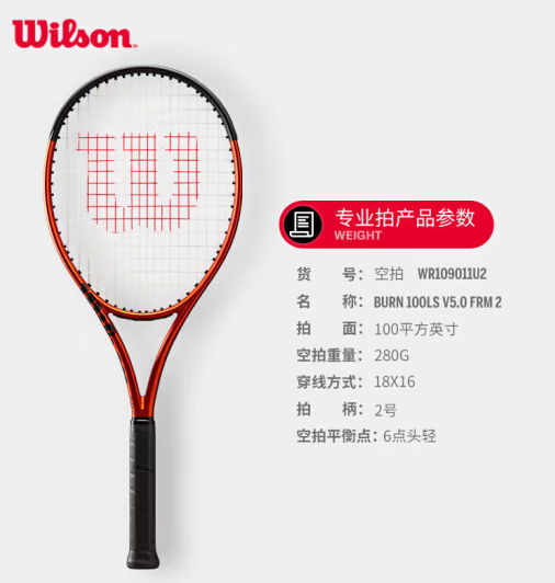 Wilson威尔胜 全碳素成人专业网球拍BURN 100LS V5.0 FRM 2(已穿线)WR109011U2 (SKU:yzwhyp938246