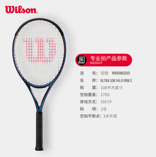 Wilson威尔胜 全碳素成人专业拍网球拍 ULTRA V4 108 FRM 2 WR108611U2 (SKU:yzwhyp938266