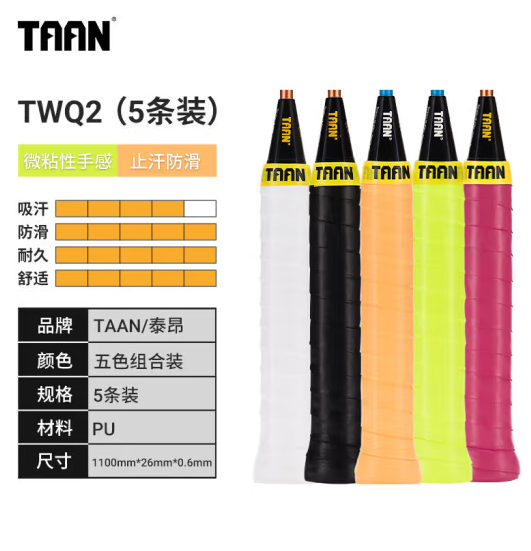 TAAN泰昂 羽毛球手胶轻薄平面粘性高吸汗手把带 TWQ2 5条装 (SKU:yzwhyp938346