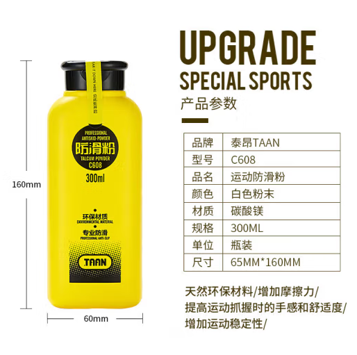 TAAN泰昂 运动防滑粉止滑粉健身羽毛球滑石粉引体向上镁粉300mlC608 (SKU:yzwhyp938351