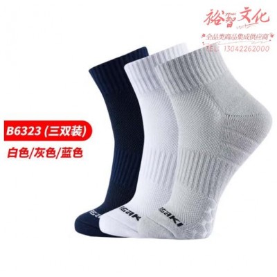 川崎(KAWASAKI)羽毛球袜袜子男毛巾底运动短袜6323(三双装) 白蓝灰 均码 (SKU:yzwhyp938370