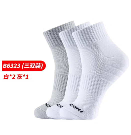 川崎(KAWASAKI)羽毛球袜袜子男毛巾底运动短袜6323(三双装) 白白灰 均码 (SKU:yzwhyp938371