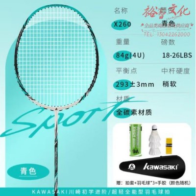 川崎(KAWASAKI)全碳素羽毛球拍单拍专业初学训练耐打羽拍套装x260青色含3球 (SKU:yzwhyp938376