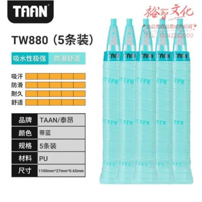 首页 > 体育设备设施 > 球类设备 > TAAN泰昂 羽毛球拍手胶吸汗带防滑微粘性糖果手胶 TW880蒂蓝色5条装 (SKU:yzwhyp938386
