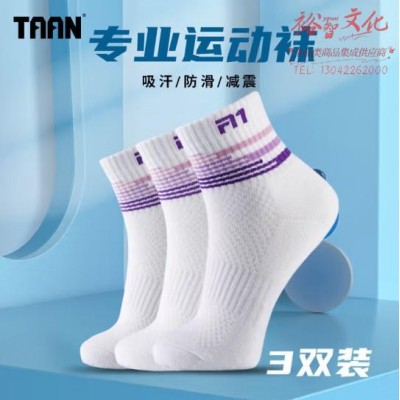 TAAN泰昂 羽毛球袜加厚毛巾底吸汗透气运动袜中筒女袜T178 白紫色3双装 (SKU:yzwhyp938453