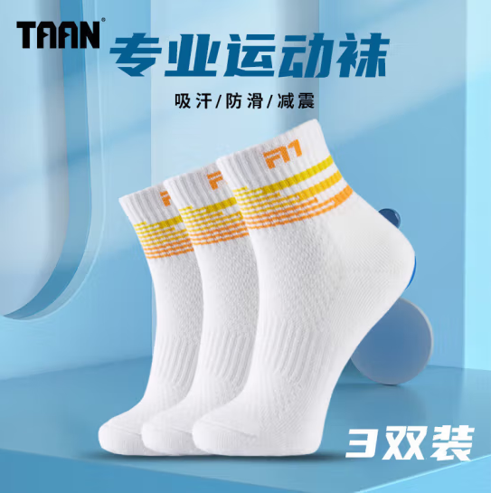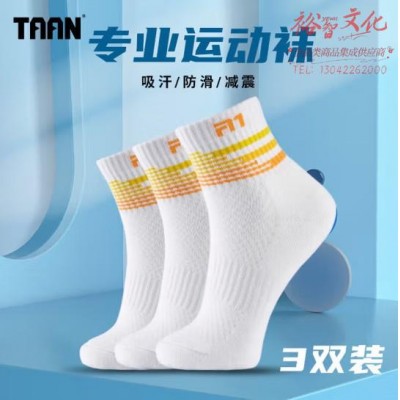 TAAN泰昂 羽毛球袜加厚毛巾底吸汗透气运动袜中筒女袜T178 白桔色3双装 (SKU:yzwhyp938457